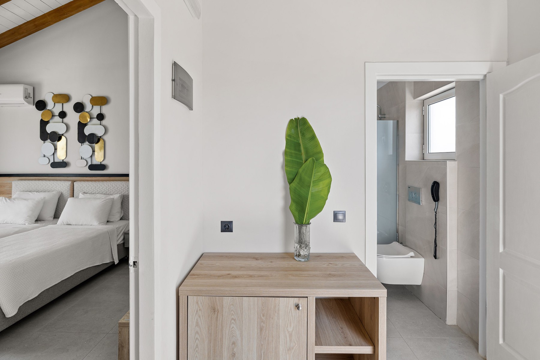 Unsere Familiensuiten mit seitlichem Meerblick eignen sich ideal für Familien, die viel Platz und Privatsphäre suchen. Sie verfügen über zwei separate Schlafzimmer, die durch einen gemeinsamen Wohnbereich verbunden sind. Die Suite bietet Platz für bis zu fünf Gäste und verfügt über Schlafgelegenheiten mit entweder einem Doppelbett und drei Einzelbetten oder insgesamt fünf Einzelbetten. Das Badezimmer ist bequem vom Wohnbereich aus zugänglich und somit für alle Gäste leicht zu nutzen. Ein privater Balkon oder eine ebenerdige Terrasse laden zum Entspannen und Genießen des erfrischenden seitlichen Meerblicks ein.